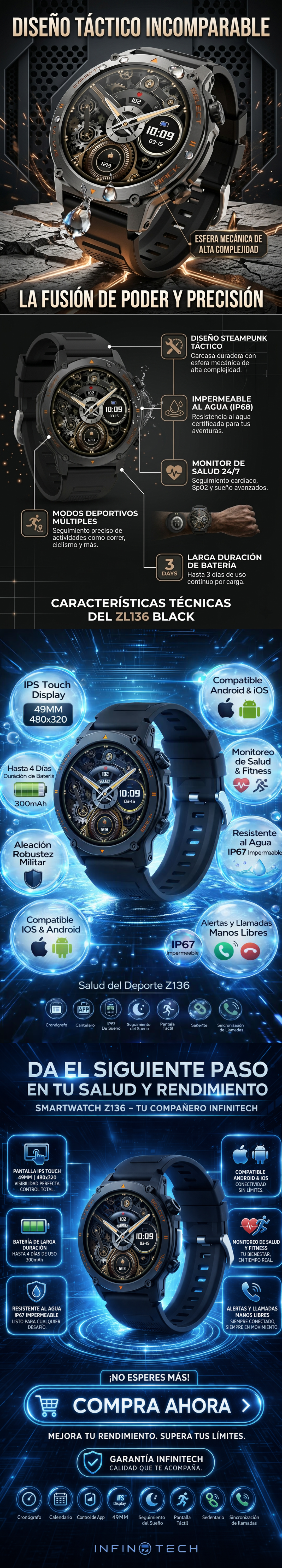 Optimizá tu rutina con estilo y funcionalidad. Elegí el Smartwatch ZL136 negro y llevá tu día a otro nivel.